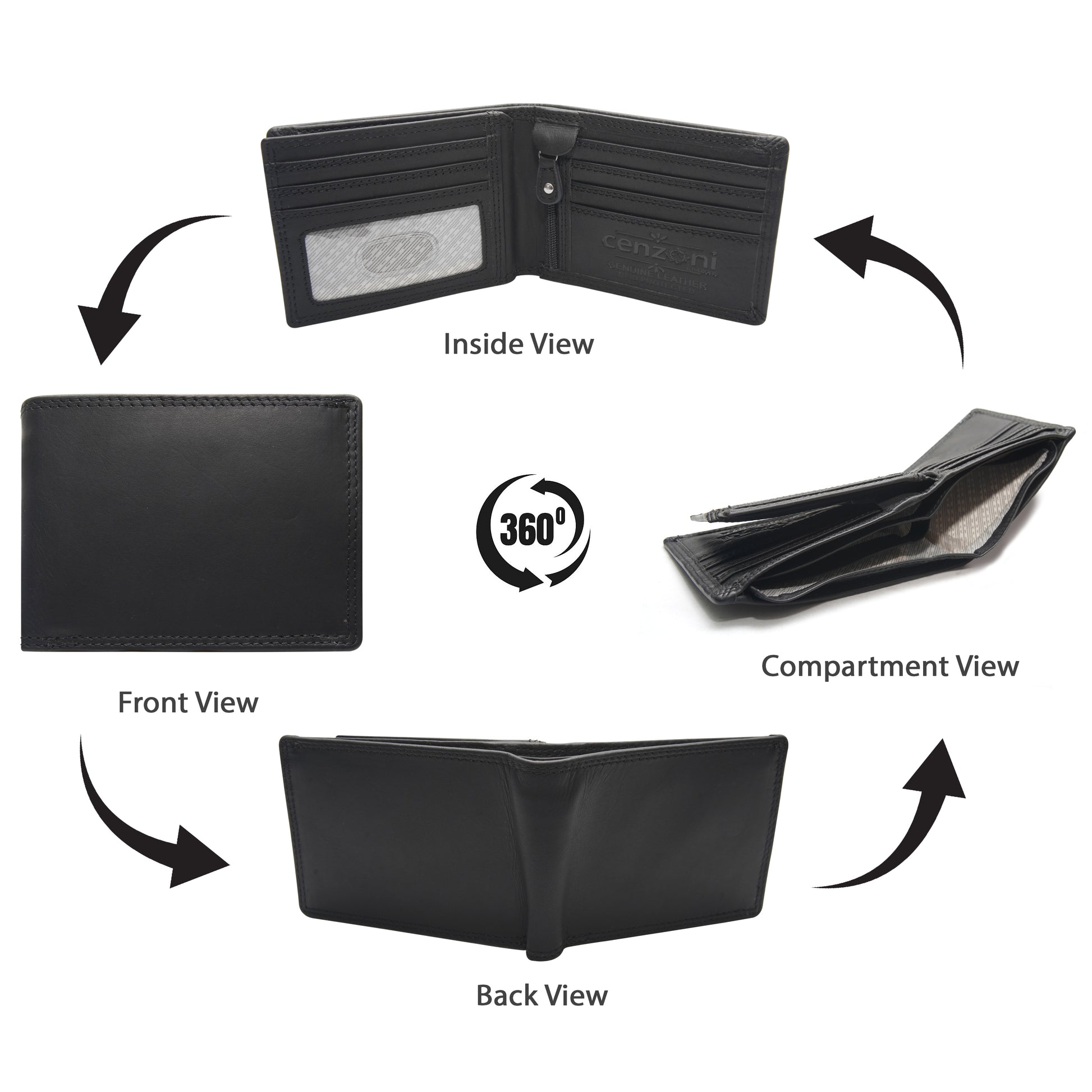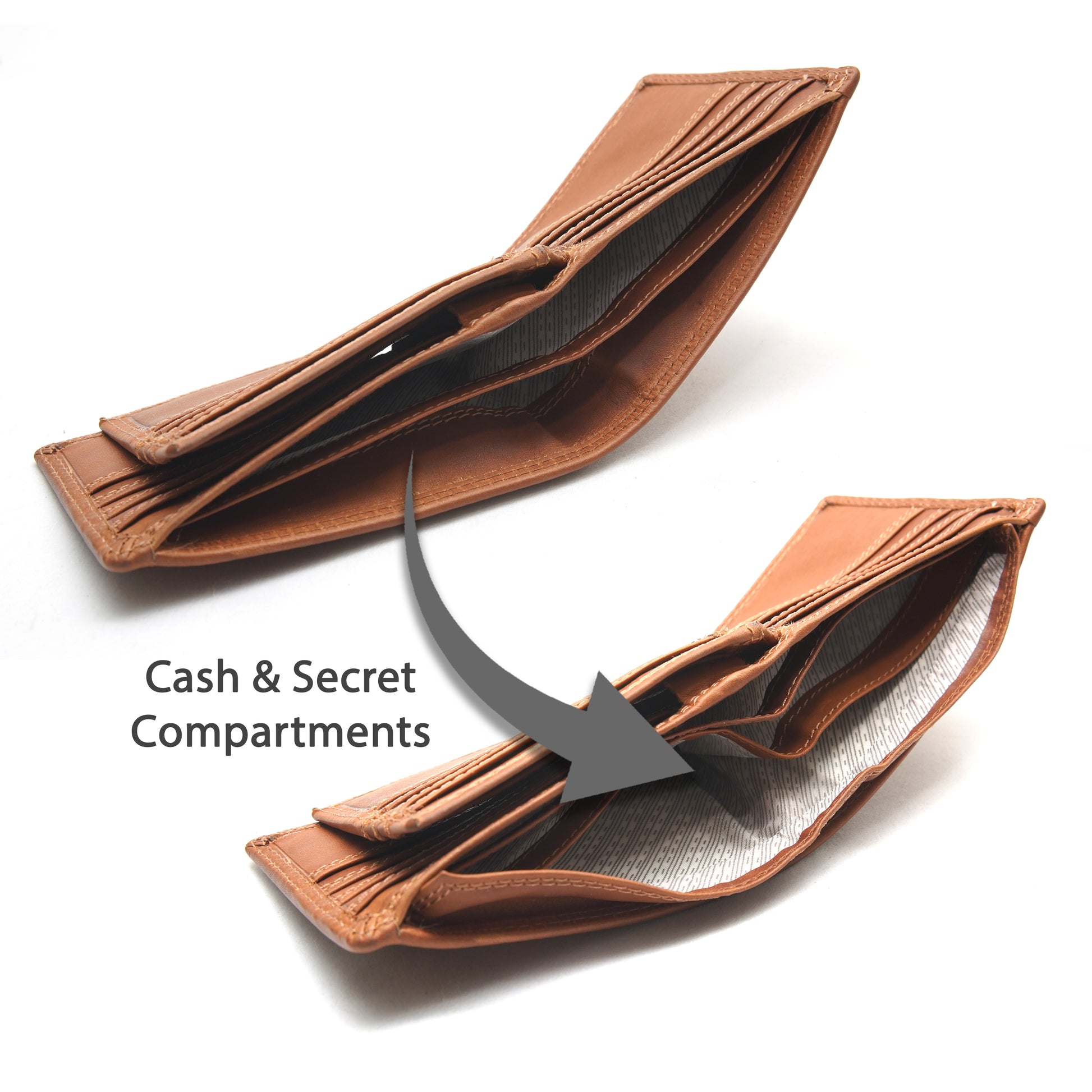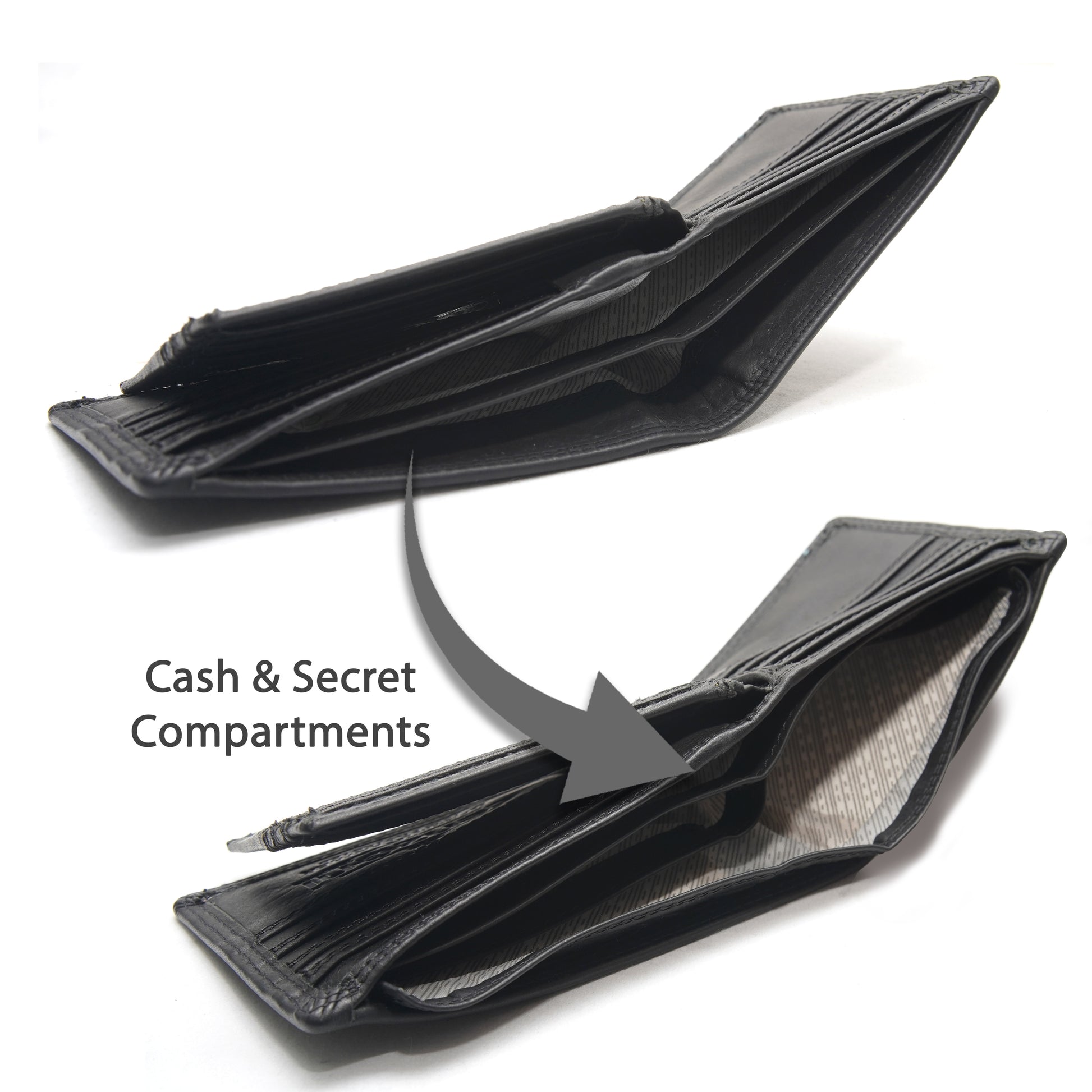 - Note Section: divided note compartment & 1 hidden under leather flap